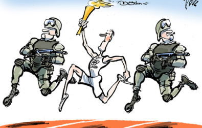 Press cartoon of the week Cities and regions Olympic escort By Tom Janssen - De Volkskrant (Amsterdam)